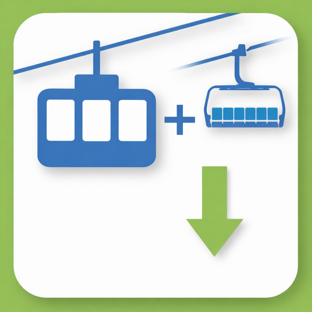 Includes: One-way cable car and chairlift rides for children aged 6 to 15.99 years and for people with disabilities.